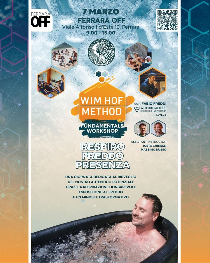 Questo workshop nasce dal desiderio di condividere il Metodo Wim Hof con chi, come noi apneisti, sente che il respiro è una porta di accesso alla consapevolezza. Esploreremo insieme i 3 pilastri del metodo — respirazione, esposizione al freddo e mindset — in modo diretto, sicuro e profondamente esperienziale.